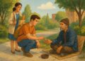 -Мен де, Алланы құлы Омармын,-деді халифа деді де аман-саулық сұрар-сұрамас құрманың таяғымен сабай жөнелді. Бейшараның басы жарылып жаны шығып кете жаздады. Болды, жетеді! Уа, мұсылмандар әміршісі! Басымдағы жаман ойдан арылдым![3]»,-деп жалбарынды. Жындыға да жан керек демекші, есін сап жиып алды. Бірақ, халифа мұнымен тиылмады. Жүз дүре ұрдырады. Арқасы тілім-тілім боп жатып қалады. Бейшараның жарасы жазылған соң, халифа тағы да дүре соқтырады. Осылайша, бірнеше рет жазалайды. Сонда, амалы құрыған бейшара: Уа, мұсылмандар әміршісі! Өлтірмек болсаң, жанымды қинамай өлтір. Ал тәрбиелемек болсаң, қатемді түсіндім. Райымнан қайттым»,-дейді.