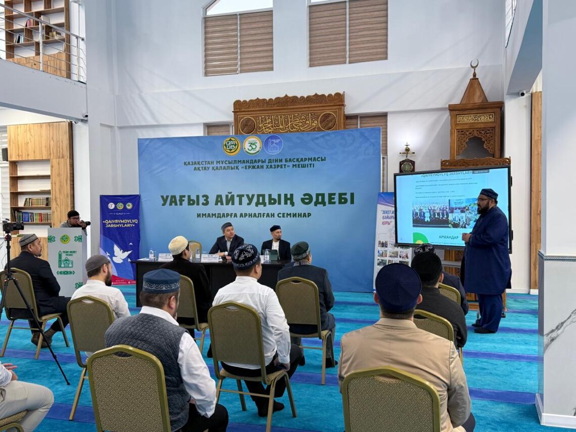 ҚМДБ Маңғыстау облыстық өкілдігінің ұйымдастыруымен Діни оқу-ағарту бағытының жылдық жоспарына сәйкес өңір имамдарының біліктілігін арттыруға арналған «Уағыз айтудың әдебі» тақырыбында семинар өтті.