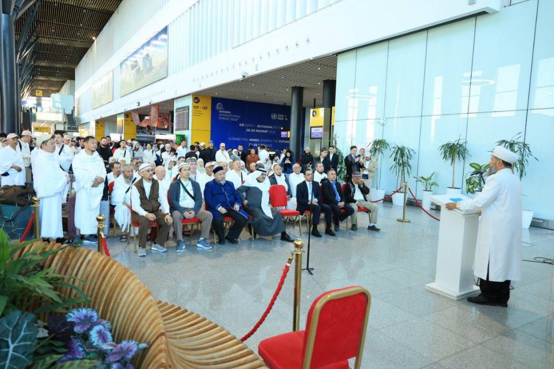 Қазақстан мұсылмандары діни басқармасының төрағасы Наурызбай қажы Тағанұлы Астана халықаралық әуежайында қажыларымыздың кезекті легін қасиетті мекенге шығарып салды.