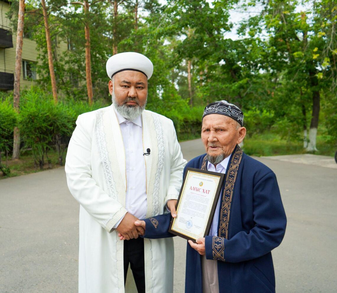 Қазақстан мұсылмандары діни басқармасының төрағасы, Бас мүфти Наурызбай қажы Тағанұлы қайырымды ісі мен имандылықтың жарқын үлгісін көрсеткен 94 жастағы ақсақал Сағадат Жұмабаевқа шынайы алғысын білдіріп, қажылық сапарына жолдама сыйлады.