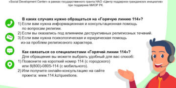 Основной целью проекта «Горячей линии –114» является обеспечения доступа гражданам и организациям к информации по всем вопросам, касающимся религиозной сферы, а также оказание консультативной и психологической помощи пострадавшим от деструктивной религиозной деятельности.