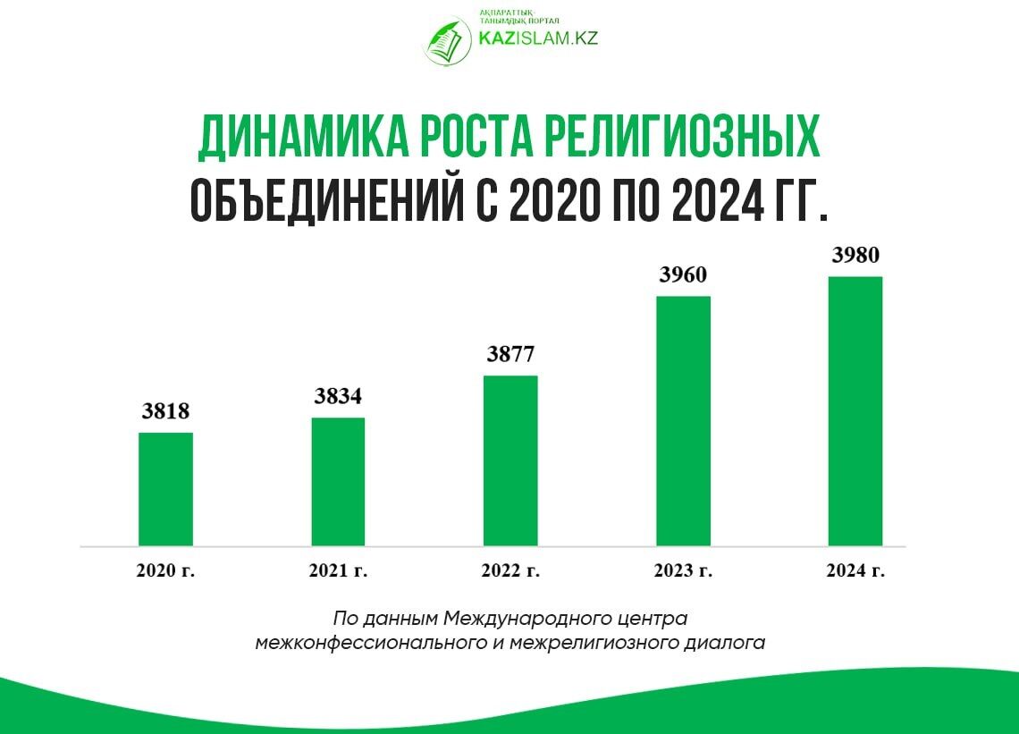Динамика роста религиозных объединений с 2020 по 2024 гг.