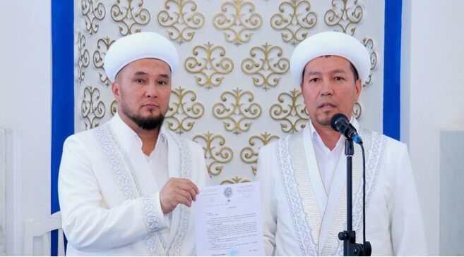 Во время пятничной молитвы в центральной мечети Актобе главный имам области Амантай Садиев объявил о назначении и поблагодарил прежнего имама Нурлыбека Шакиязадаулы.