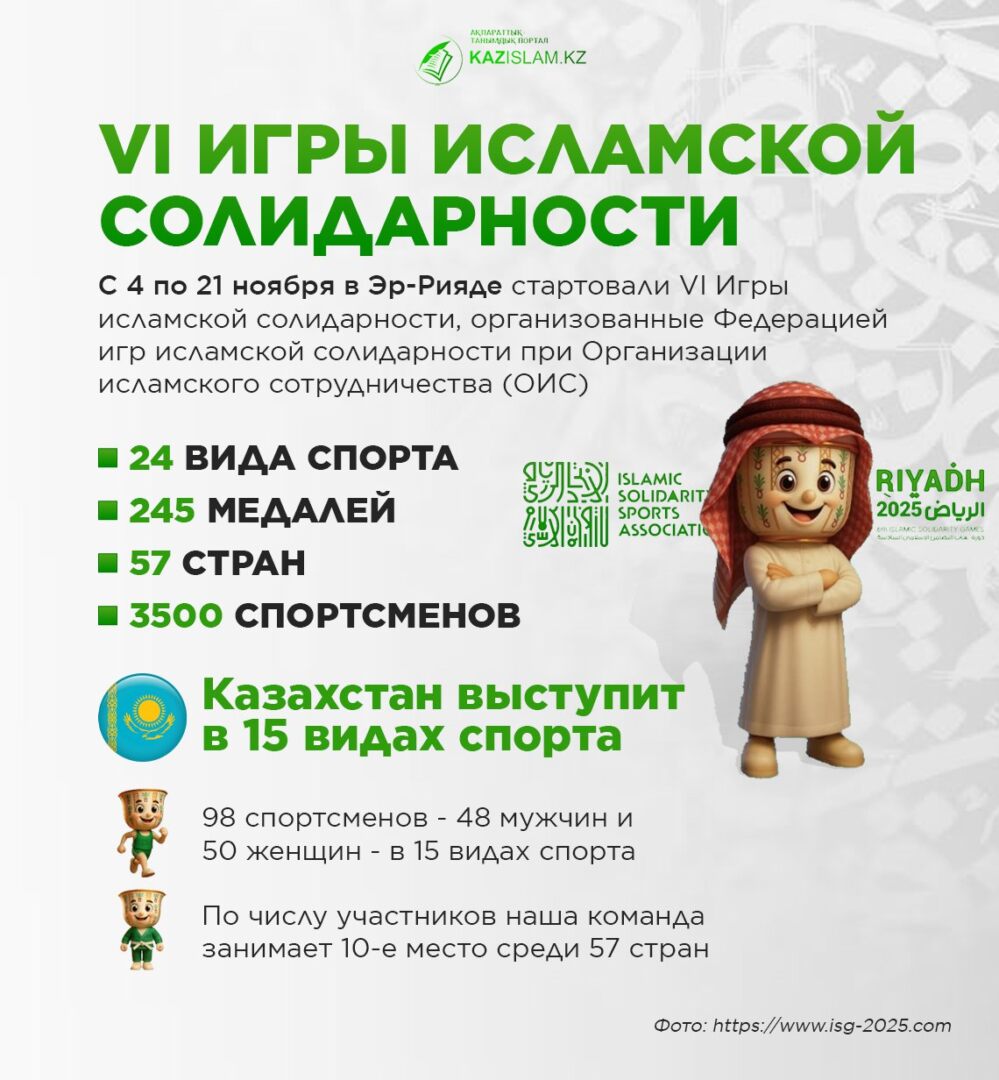 С 4 по 21 ноября в Эр-Рияде стартовали VI Игры исламской солидарности, организованные Федерацией игр исламской солидарности при Организации исламского сотрудничества (ОИС).