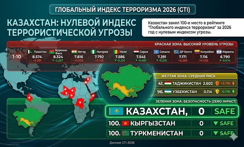 Казахстан за последние 9 лет продемонстрировал устойчивое снижение террористической активности.