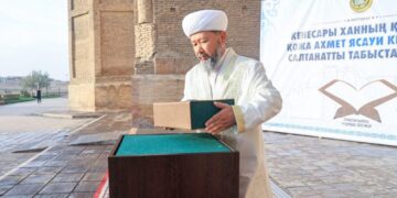 Жаңалықтар Марал ишанның Кенесары ханға сыйлаған Құран кітабын Қожа Ахмет Ясауи кесенесіне қойды 17.11.2023